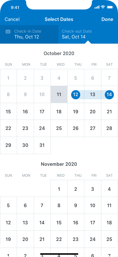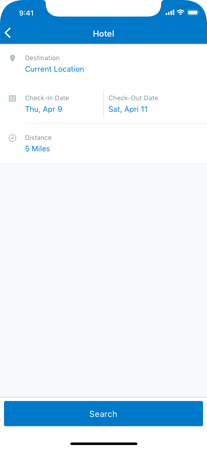 We simplified the search criteria page and added a "Most Recently Used" list for the location lookup. We also added a new calendar picker to replace the standard iOS spinner-type calendar.